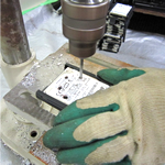 色々な記録媒体にドリルにて穴をあけて読取・再利用を出来なくします。